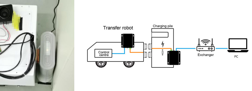 However, in some special occasions, wireless network communication is prohibited. The data is stored locally. After the AGV completes the operation, the data is uploaded to the host computer. In this case, only wired communication can be adopted. Using power carrier communication, install a power carrier in the charging pile, and install a power line carrier on the AGV. When the AGV power port is connected to the charging pile, the charging pile can charge the AGV. At the same time, the AGV establishes a network connection with the host computer and can upload data.