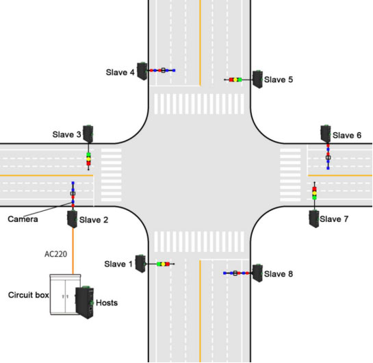 Adopting broadband power carrier communication, making full use of the existing power lines, the cameras, radar signals and traffic light information at traffic intersections are brought together in the traffic signal control box.The advantages are: