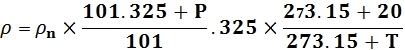 ρn — Density of the medium under standard conditions ( 101.325 kPa , 20 ℃) ( kg/m3 )
