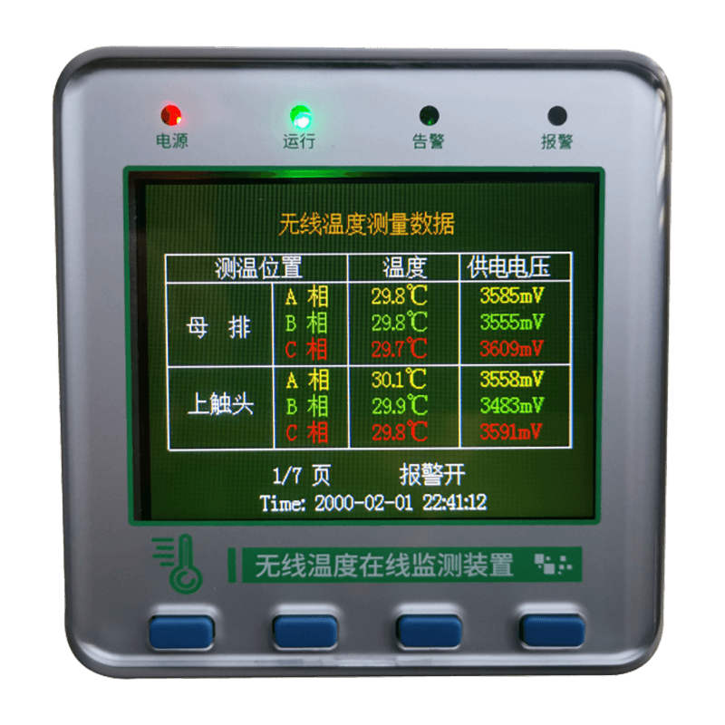 Our company's independently developed wireless temperature monitoring system is a real-time temperature measurement system that uses radio waves for signal transmission. This system mounts a sensor on the device being measured, and the sensor is connected to the receiving host via a wireless network. This system fundamentally overcomes the challenge of real-time online monitoring of the operating temperature of high-voltage equipment contacts.