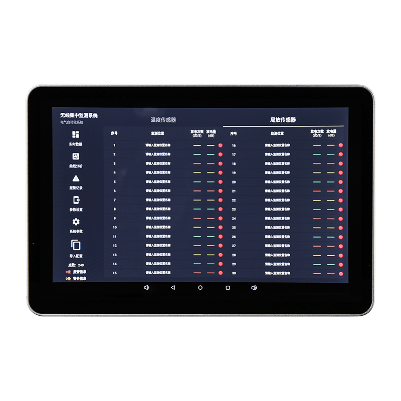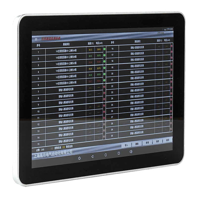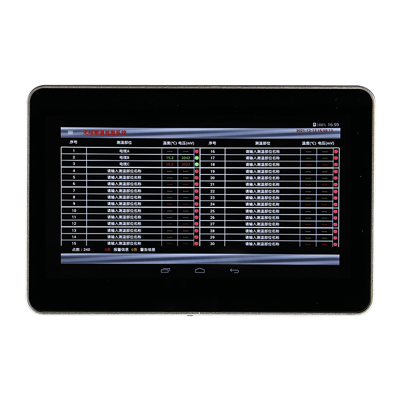 The KL-MT89MP touchscreen wireless temperature measurement host is an industrial-grade 10-inch touchscreen host equipped with a standard communication interface, supporting network operation and capable of receiving data from wireless temperature sensors. Simultaneously, with the help of host computer software, the host can record real-time operating temperature data of high-voltage equipment, enabling proactive maintenance of high-voltage equipment for thermal failures and providing historical data for high-voltage equipment repair.